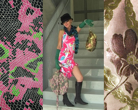 Die Projektion ihres Videos „design patterns“ (Schnittmuster) in der Ausstellung zeigt eine non lineare Sequenz von (Video-/Foto-) Aufnahmen und Animationen. Szenen einer durchaus befremdlichen Modenschau wechseln sich ab mit der sukzessiven Entwicklung sich intensivierender Licht-